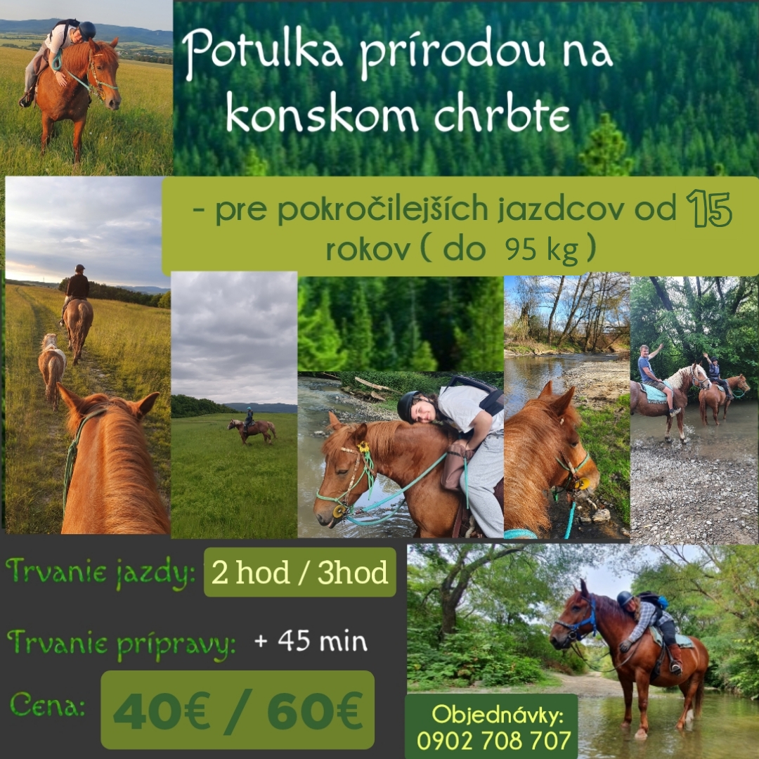 Práca s deťmi, koňmi a ostatnými zvieratkami dokopy nás veľmi baví a napĺňa a radi Vám ukážeme ako správne zaobchádzať s koňmi a ako sa pri nich správať, aby Vás kôň nebral ako hrozbu, ale ako svojho priateľa. U nás sa presvedčíte, že najkrajšie miesto, z ktorého môžete obdivovať krásy stvorenstva je práve konský chrbát.