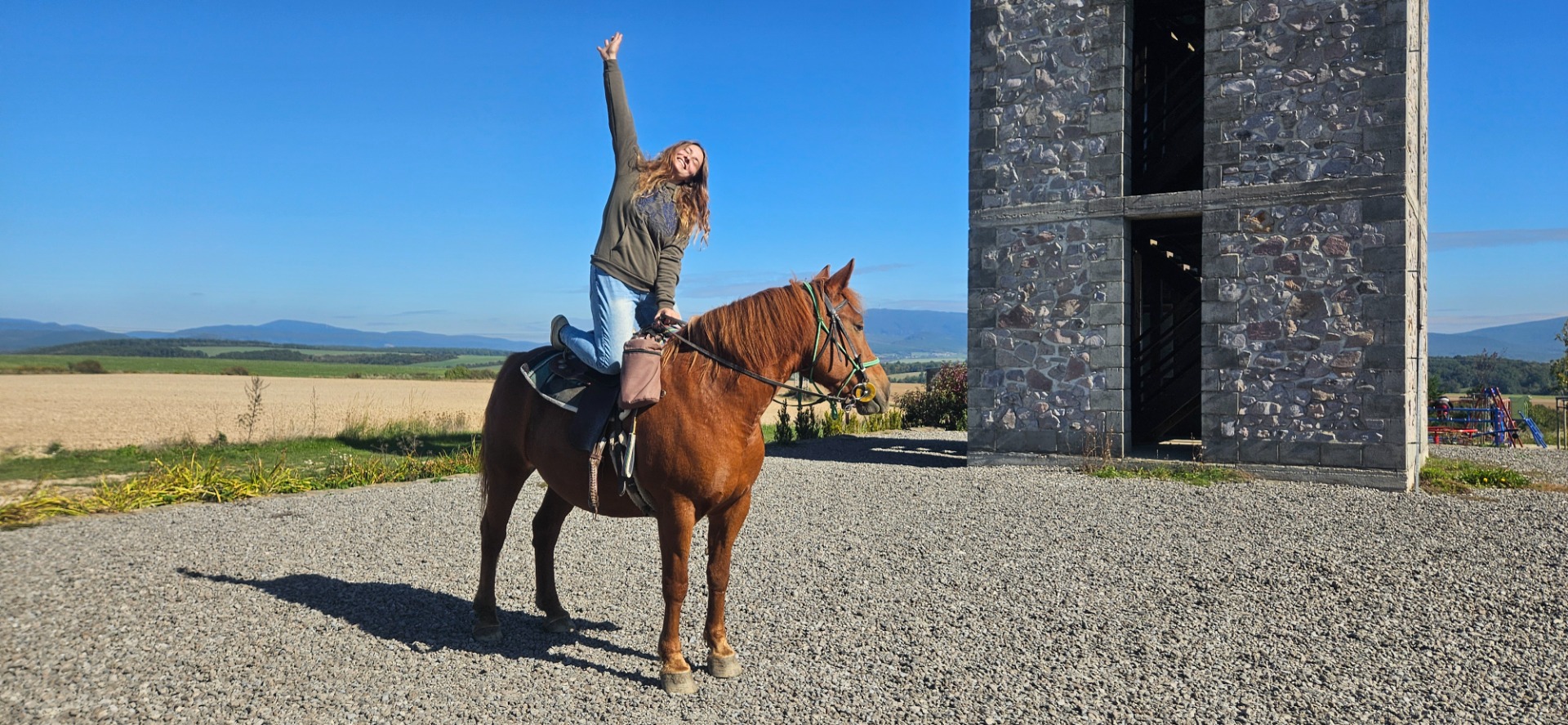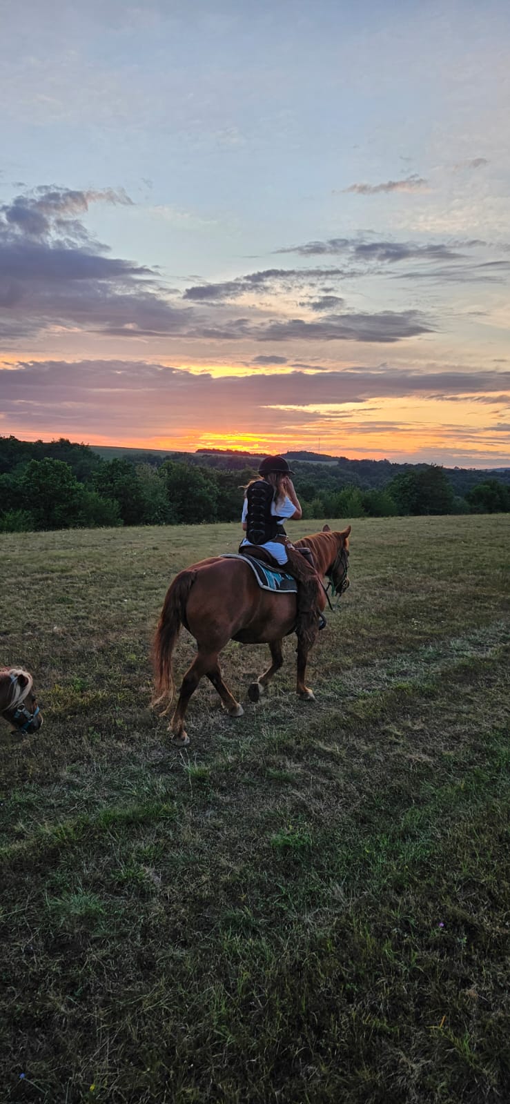 Hneď ako to bolo možné som sa ako malé dievčatko prihlásila na voltíž - gymnastiku na koňoch. Tu som získala úžasnú obratnosť, odvážnosť, rovnováhu a spevnenie svalstva. Po niekoľkých mesiacoch ( ako 7 ročná ) som prešla do jazdeckej školy, kde som sa stala členkou klubu a začala som sa učiť jazdiť na koníkoch - huculoch. Keď som si už o niekoľko rokov bola istá v jazdení a starostlivosti o koňa, tak som si začala prenajímať koníky a starať o nich ako o vlastné :-) V roku 2016 som si urobila kurz inštruktorky jazdectva I.kvalifikačného stupňa v Motešiciach a odvtedy sa venujem výučbe jazdeniu detí či dospelých. Od marca 2021 sme si spoločne s manželom zaobstarali vlastné koníky, ktoré máme na našej farmičke, a s ktorými môžeme spoznávať a brázdiť tú našu vzácnu a prenádhernú slovenskú prírodu a samozrejme aj robiť radosť všetkým deťom či dospelým, ktorí k nám zavítajú :-) Tak isto ju radi urobíme Vám ♡